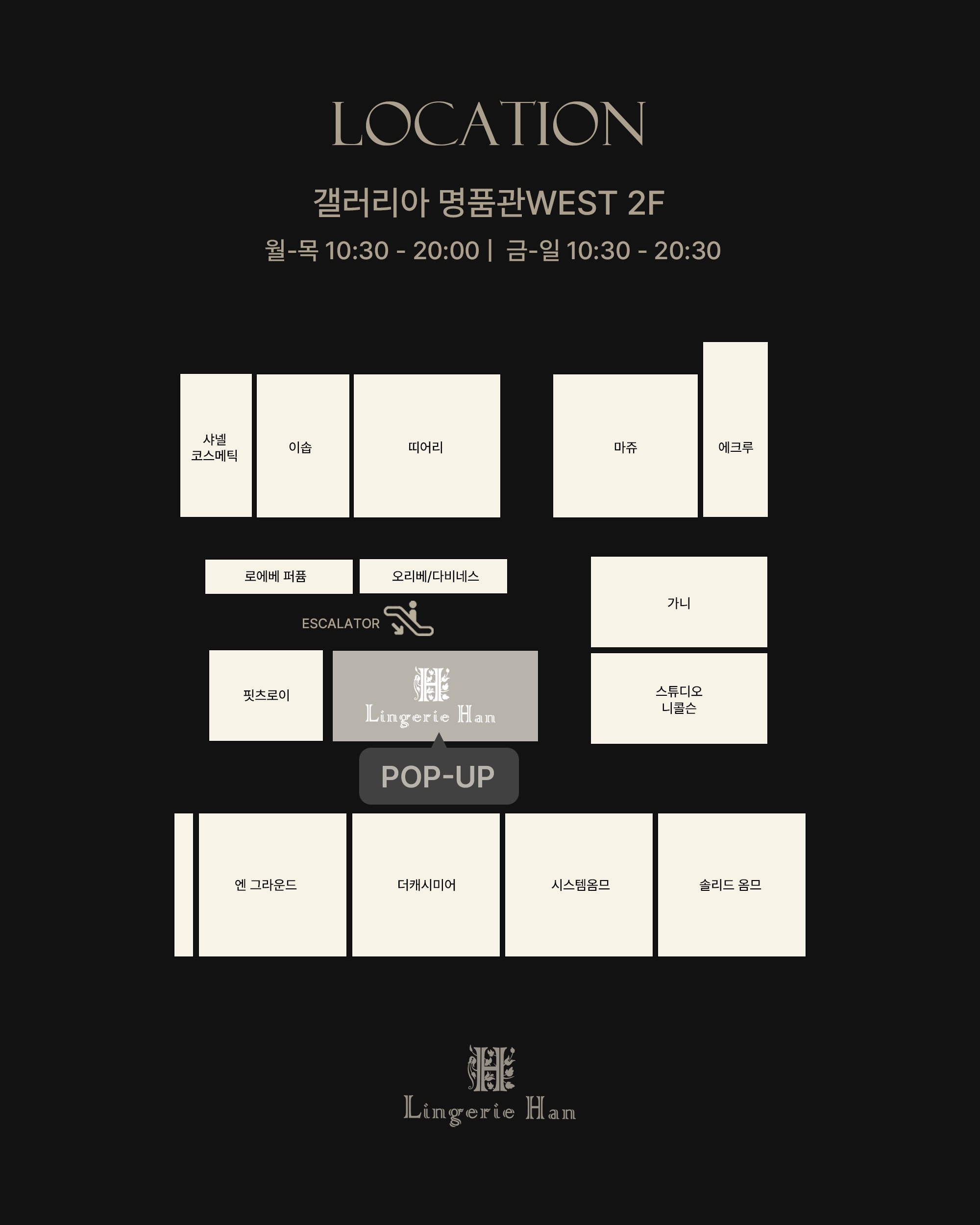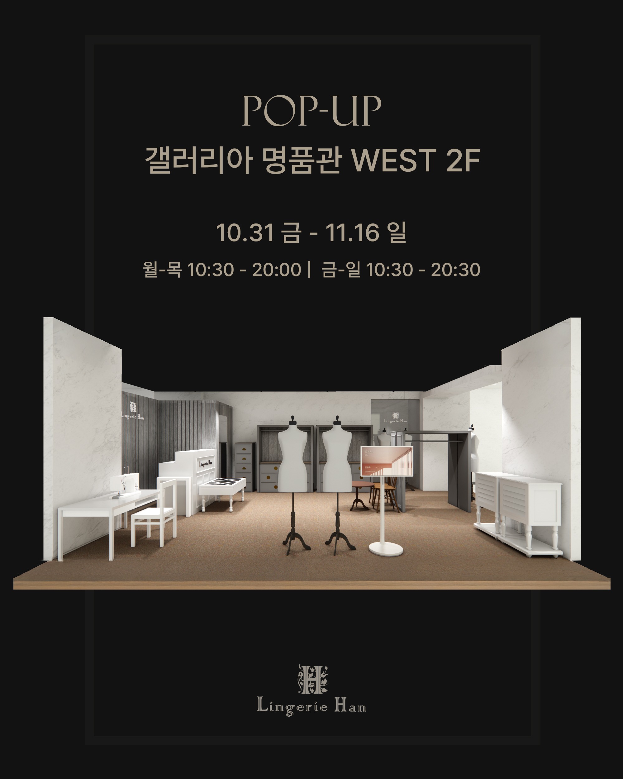 10월 31일(금)부터 갤러리아 명품관 WEST 2층에서 란제리한 팝업스토어가 진행됩니다.